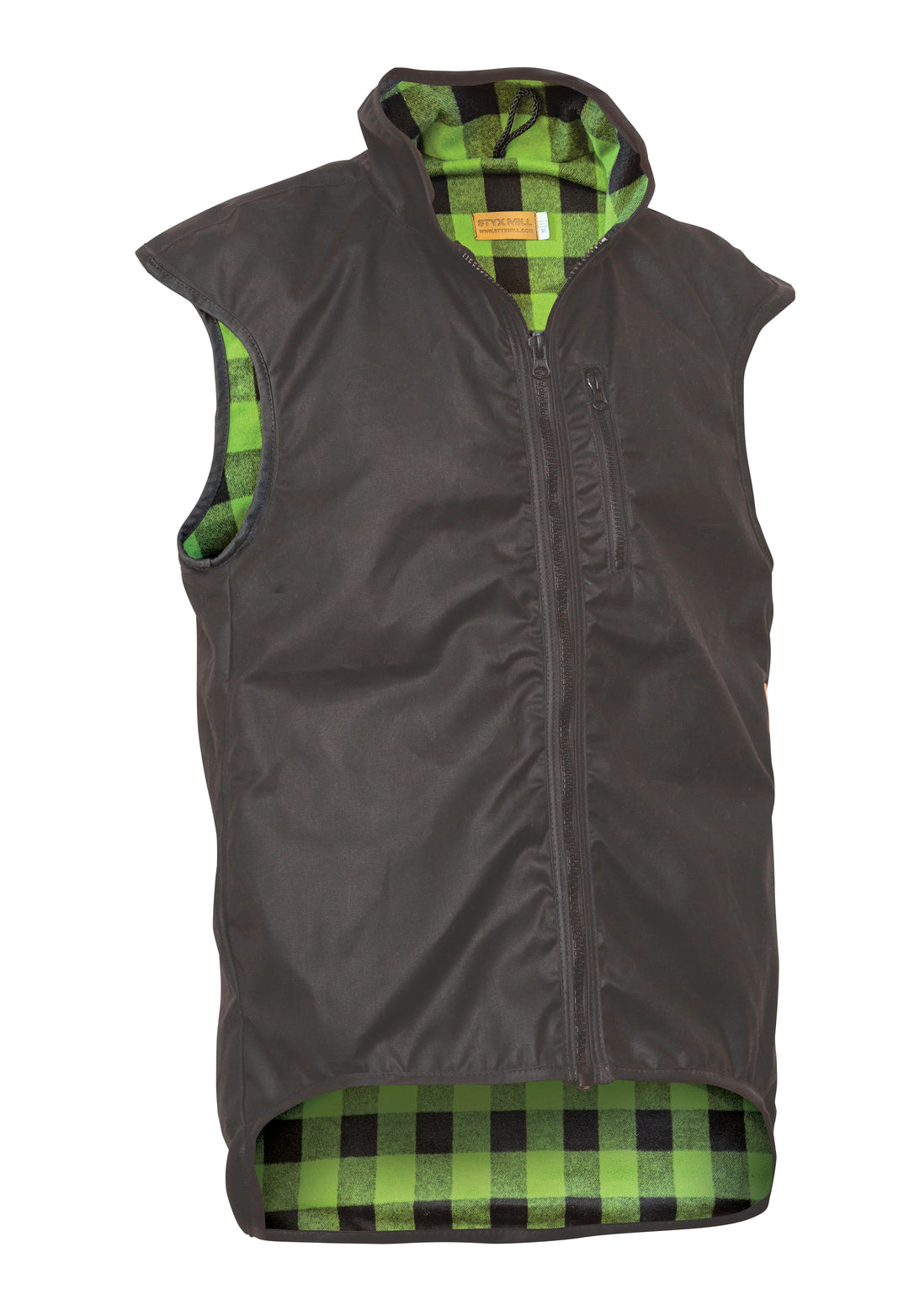 Styx Mill Oilskin Green Check Province Wool Lined Vest